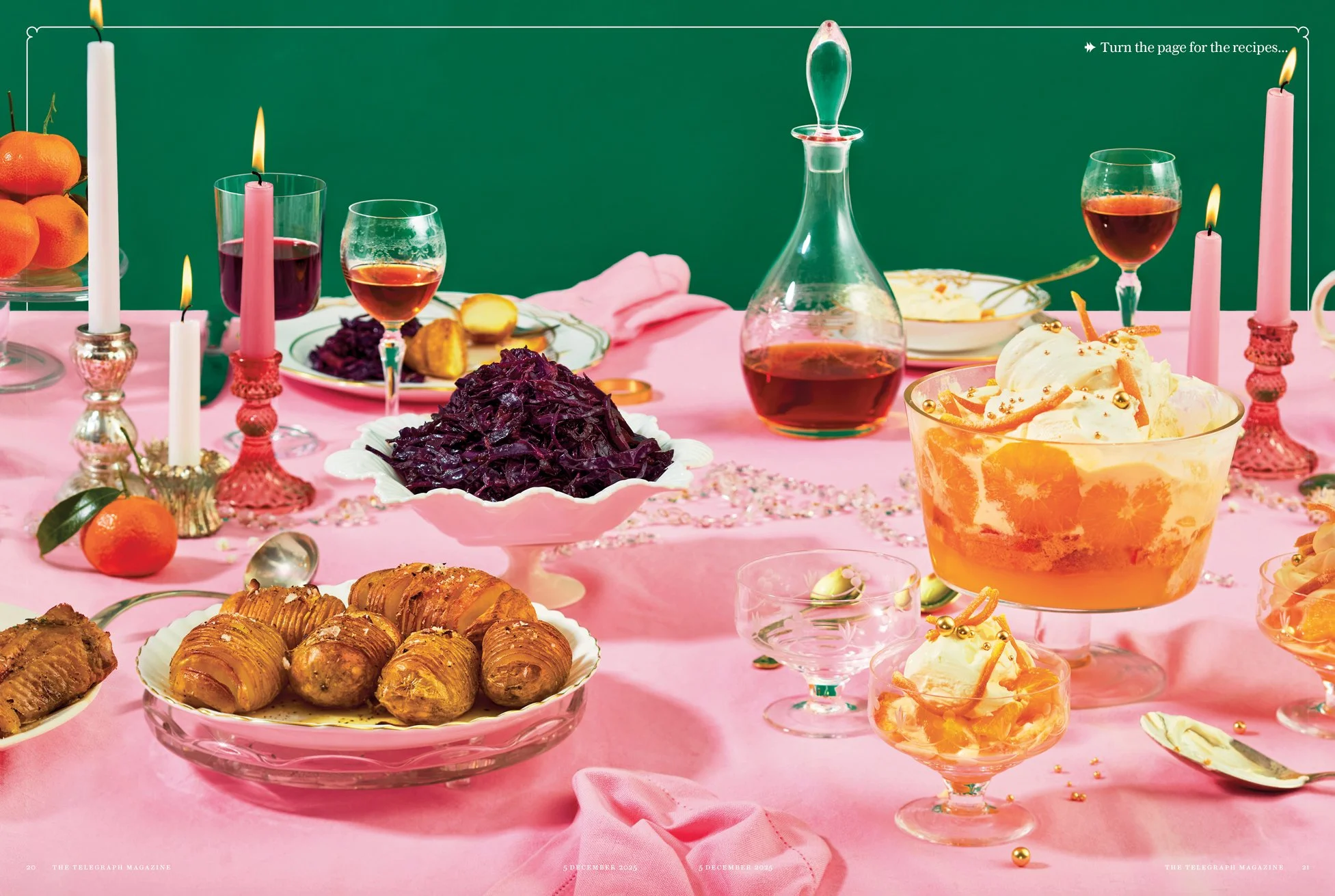 Alexis Ko recently shot a festive food story for The Telegraph Magazine’s Most Delicious Christmas, bringing award-winning food writer Diana Henry’s seasonal recipes to life. The shoot captured a mouth-watering spread including smoked scallop salad, roast goose with sweet and sour fruit, and a show-stopping caramelised orange and marmalade trifle.