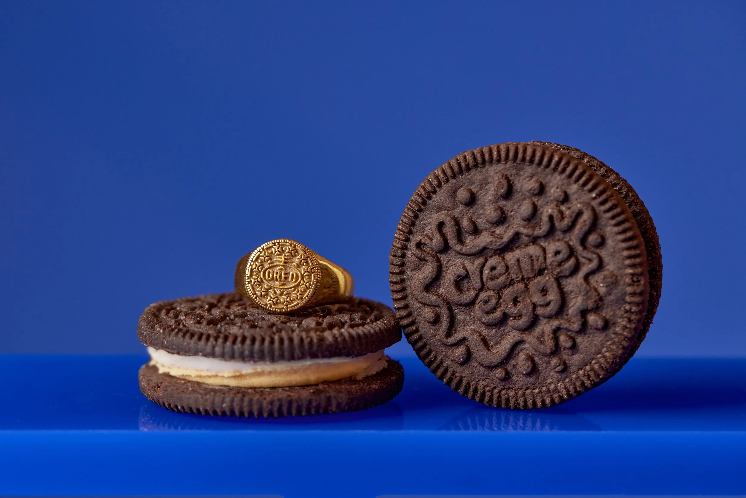 The shoot marked the launch of the new OREO Creme Egg Cookie, described as “Born of Two Icons”, alongside a Cookie Crest signet ring designed as a playful nod to the so-called Neppo Cookie. The limited-edition piece was created by London jeweller Rosie Greener, founder of Good Daze.